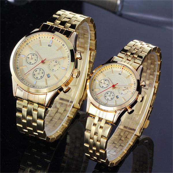 Mineral Glass Stainless Steel Time Calendar Couple Couple Quartz Watch